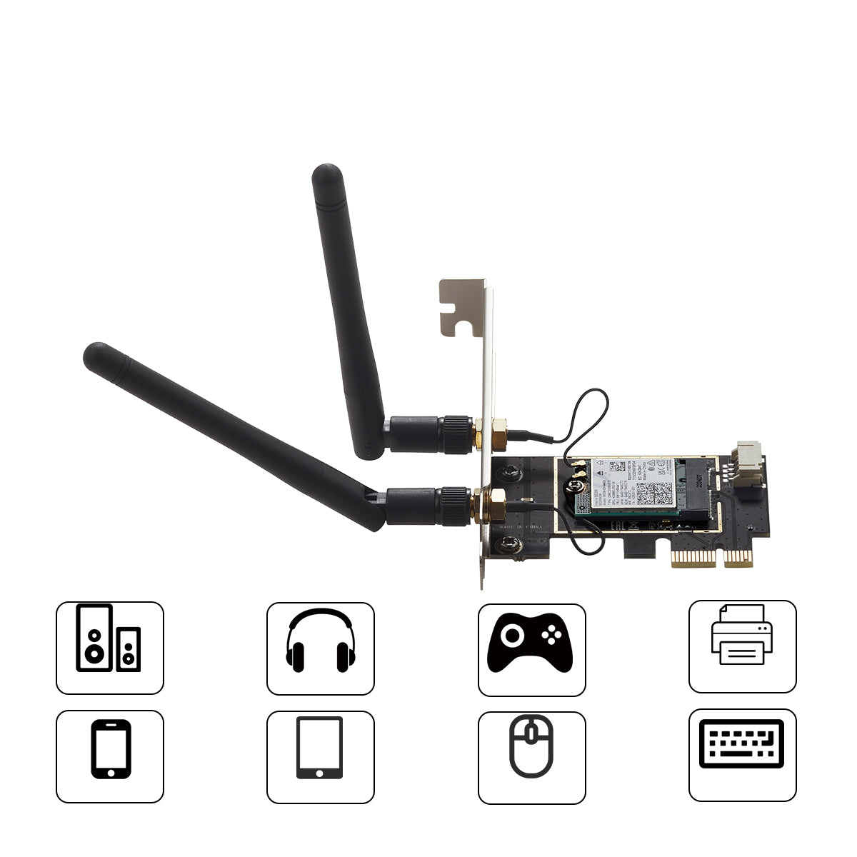 • Wi-Fi 7 PCIe network card ×1 • User Manual ×1 • USB connection cable ×1 • Antennas ×2 |